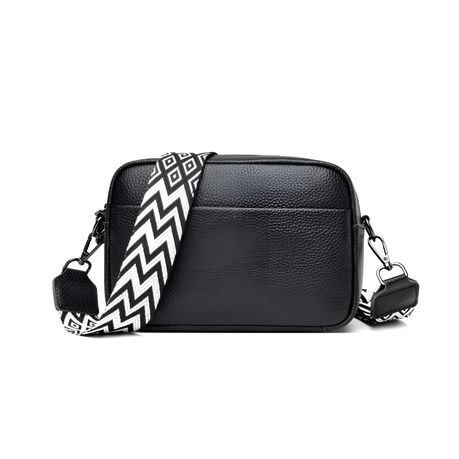 21cm Leather Crossbody Bag for Women With Shoulder Straps - Black