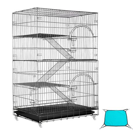 4 Tier 50'' High Cat Cage Cat Playpen with Wheels and Hammock(90x56x127cm)