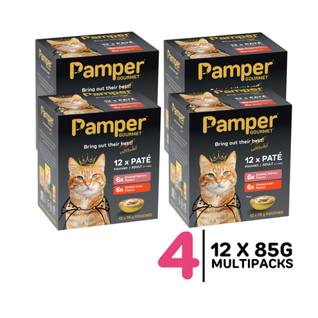4 x Pamper Wet Cat Food Multipack Pate Flavoured (12 x 85g)