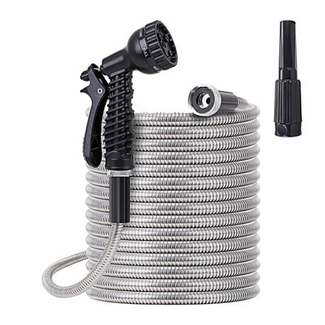 Durable stainless steel hose with 2 nozzles, kink-resistant and flexible for easy use in any setting.
