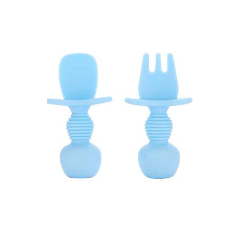 Baby silicone fork and spoon chewable tableware, first stage training baby-led weaning utensils