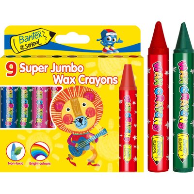 Bantex @School Super Jumbo Colouring Wax Crayons (14mm)(Box of 9)