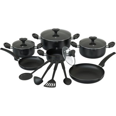 The premium cookware set that takes the hassle out of cooking & turns you into a kitchen extraordinaire. Non-stick, induction-ready cookware. Premium induction-ready bases add versatility & enable cooking on all hob types. Handy pouring spouts. Decant, reduce, pour & drain with ease with the super-handy & practical pouring spouts. Cool-touch handles Made from premium quality heat-resistant Bakelite.* Tempered glass lids. With interchangeable tempered glass lids, you can easily find the right fit for your pots & pans.