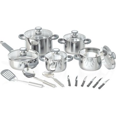 Durable construction. Premium grade stainless steel, thick, stepped base that allows for perfectly even heat distribution for fast and efficient cooking. Suitable for induction, gas, electric and halogen cooktops. Ingenious lid design. Stylish, tempered glass lids designed with 2 different sized strainers for your preference of easy draining. Convenient pouring spouts & cool-touch silicone handles. Engineered for ease-of-use, with convenient cool-touch handles and built-in spouts for precise, drip-free pouring of sauces, soups and more! *Warranty applies to pots & pans only - excludes lids, handles & accessories