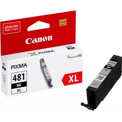 Original Canon CLI-481XL High Yield Black Ink Cartridge. Page yield: 501 pages, Printing colours: Black, Quantity per pack: 1 piece. Compatible with Canon Pixma TS8140, TS6140, TR7540, TS9540, TS8240, TS9541C, TS6240, TS704, TS6340, TS8340 and TS9140 printers.