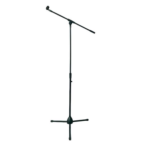 Versatile mic stand with adjustable height 76-150 cm, quick boom control, and a tripod base