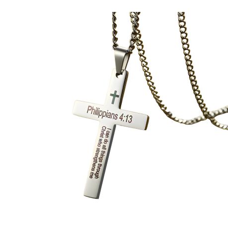 Christ Cross Philippians 4:13 Stainless Steel Cross & Chain