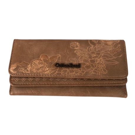 Cotton Road 2 Sections Floral Embroidered Wallet- Khaki