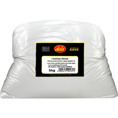 Dala Casting Stone is a white powder product similar to Plaster of Paris, except it dries to a much harder finish. It can be poured or sculpted with. It can be poured into moulds to form a postive, or poured over objects to cast a negative.