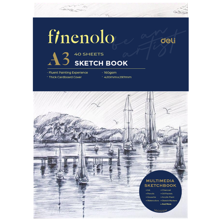 Deli Multi-Media A3 Sketch Book 160gsm 40 Sheets Top Binding