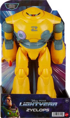 This large scale figure represents one the fierce robots, called Zyclops, inspired by the thrilling animated adventure, Disney and Pixar's Lightyear. At 12 inches tall and more than 7 inches wide, this action figure has 11 movable joints and movie-authentic detail including design, sculpt and decoration. With his fist-like left hand and claw-style right, this Zyclops is ready for realistic conflict as he takes on Buzz Lightyear and his team.