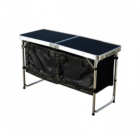Double Folding Camping Cupboard Table with Storage - Black
