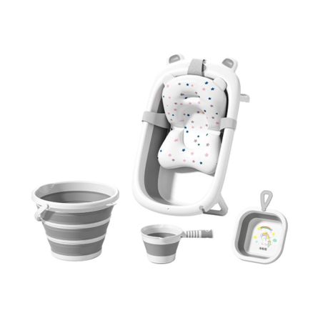 Foldable Baby Bath Basin and Water Spoon Set -Grey 5 Pieces