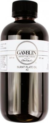 Copperplate oils are the base carrier or vehicle for traditional printing inks to which pigment is added before grinding to the appropriate consistancy for the various printmaking techniques. Also known as boiled or burnt linseed oil, referring to their traditional method of modification, they are today created in a heated high pressure vessel. The process adds viscosisty and tack to the linseed oil in increasing degrees ranging from weak to strong as heating time is increased. As a rough guide the weaker (thin) to medium oil being the base for intaglio inks and the medium to strong (thick) oil the base for relief and lithographic inks. You can soften and loosen an ink by adding weak thinner oil and increase tack and viscosity by adding stronger thicker oil. Plate oils should be added to inks sparingly, as the detail of a print may be lost if the ink becomes too fluid. Gamblin Burnt Plate Oil Number 2 is a medium oil and is the primary oil binder for Gamblin Etching Inks.