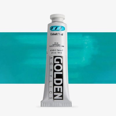 Please Note: Golden place a high priority on the health and safety of the artist's studio and materials. They feel the artists should be aware of any potential hazards so Golden far surpass the required quantity of health and safety advice on their labels. Their products are not more dangerous, just more accurately labelled. Genuine Cobalt Teal, excellent lightfastness and permanance.