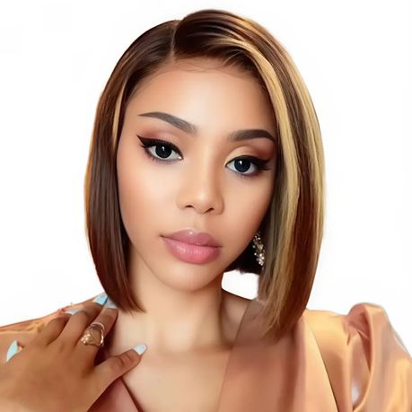 Golden Perfect 12Inch Highlight Honey Blonde Lace Front Bob Wigs Glueless Pre Plucked with Baby Hair for Women