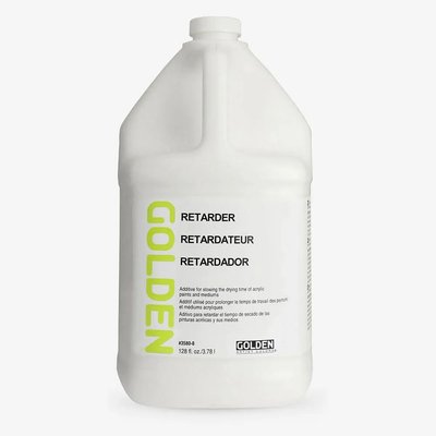 Golden Retarder is an additive used to increase the open (drying) time of acrylic paints. Useful for "wet in wet" techniques and reducing skinning on the palette.