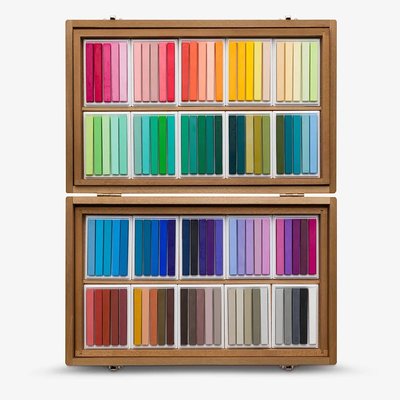 Holbein Oil Pastels have a unique formulation which makes them move and feel like a soft pastel but without the dust. Endorsed by the Oil Pastel Association of America, these high quality artist pastels are the result of over 75 years of research.The range offers a wide spectrum of rich colours with a high pigment load, and these oil pastels handle beautifully, with excellent layering and blending capacity. Their square shape allows for intricate detail and clean, sharp lines.Holbein oil pastels can be applied to almost any ground. They can also be used over finished acrylic and oil paintings and in conjunction with a variety of wet and dry media. Due to the paraffin content and highly refined mineral oil, they will never harden completely. Unlike oil pastels that use vegetable oil, Holbein oil pastels are inert once laid down and will not dry out or crack.This set contains the complete range of 99 colours and an additional white.Please note: due to trading agreements we are unable to ship this product to the US and Canada.