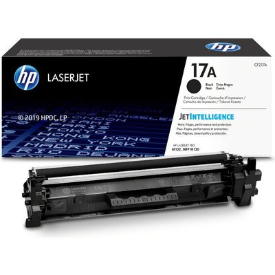Original HP 17A Black Toner Cartridge. Page yield: 1600 pages, Printing colours: Black, Quantity per pack: 1 pc(s)