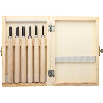 Lightweight yet sturdy with wooden handles, this set of 6 wood cut knives is the perfect introduction to wood cutting. With a range of different blades, from V-Straight parting chisels to gouges, they will enable you to create a variety of effects and textures. Great for basic and detailed carvings on wood, wax and clay as well as for linoleum block carving. Presented in a wooden holder box, ideal as a neat storage solution and for traveling.