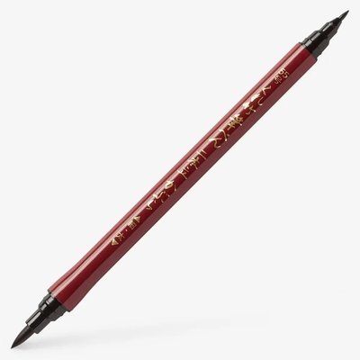This double ended brush pen has a hard brush tip and a soft brush tip to make lettering, outlining and inking illustrations as simple as possible. The soft brush tip is more flexible than a normal tip making it easier to create thick or thin strokes, while the hard brush tip is stiffer and allows for a greater degree of control. It is filled with water-soluble dye ink.