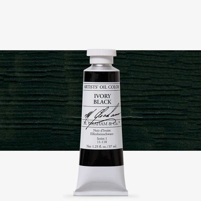 M. Graham's Ivory Black is a pure, rich black leaning to the warm side of the color spectrum. The go-to black for mixing and creating useful greys. Much stronger than most Ivory Blacks.