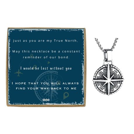 Men Vintage Compass Pendant Box Chain Card Gift Set