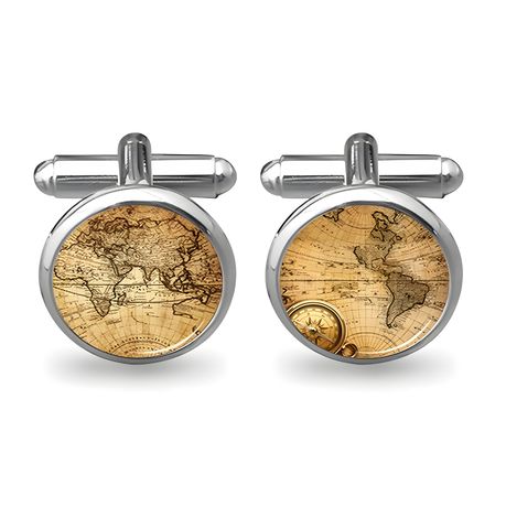 Mens Personalized Cufflinks, Vintage World Map Cufflinks Gift for Men