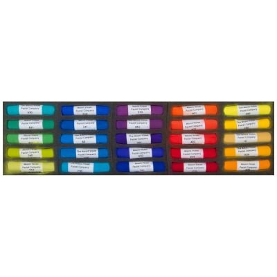 Mount Vision soft pastels are hand made by Karl Kelly using the finest traditional and synthetic pigments combined with a base of chalk, talc and clay to produce a pastel with a wonderful buttery feel, yet durable and strong. Set includes: 550, 290, 10, 620, 400,401, 402, 403, 404, 410, 570, 331, 650, 520, 341, 80, 430, 220, 31, 30, 70, 630, 50, 360, 562.