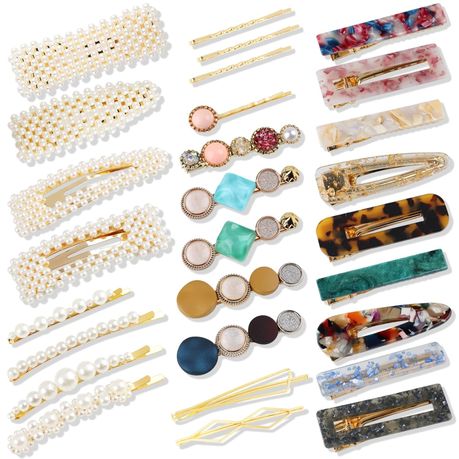 Pearls Resin Hair Clips and Barrettes Hairpins Accessories For Girls - 28 Piece