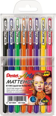 Pentel Mattehop Liquid Gel Rollerballs (Wallet of 8) - 1.0mm