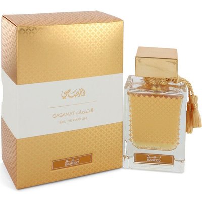 Sumptuous Rasasi Qasamat Bareeq for women celebrates Europe's modernism, Asia's spiritual serenity and Africa's natural beauty. The fragrance opens with the fresh, tangy notes of bergamot, green apple and orange. These bright top notes descend into the sweet and spicy heart notes of caramel, saffron, jasmine and rose.