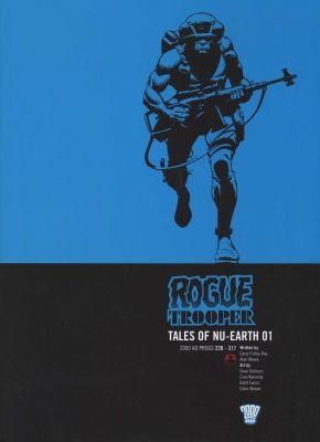 The war between the Norts and the Southers chemically poisoned the entire atmosphere of Nu-Earth, so the Southers created the Genetic Infantrymen: blue-skinned soldiers who could breathe the toxic air, equipped with bio-chips to record their personalities in their final moments, for eventual re-corporation. But a Souther traitor sold the G.I.s. out, and all but one were slaughtered. Now this survivor stalks Nu-Earth on a mission of revenge, aided by his dead friends now "living" in his gun, helmet and backpack. He is the last G.I.--the Rogue Trooper Suggested For Mature Readers.