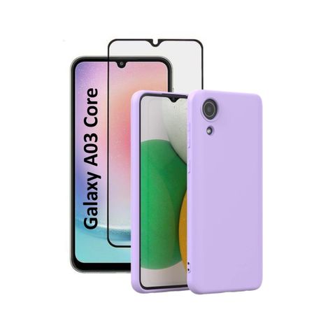 Silicone Phone Case & Screen Protector Combo For Samsung A03 Core -Purple