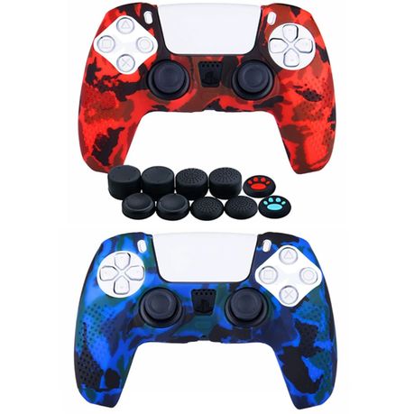 Camouflage Silicone Shell Accessories for Sony 5 PS5, Handle Shell x 2,Thumb Handle x 10(Red+Blue)
