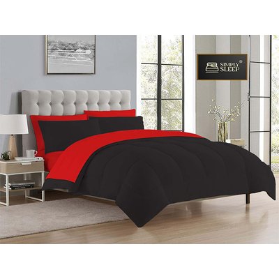 Simply Sleep - Reversible Comforter Set - 90 GSM Micro Fibre - True Red - Jet Black, Single - Three Quarter