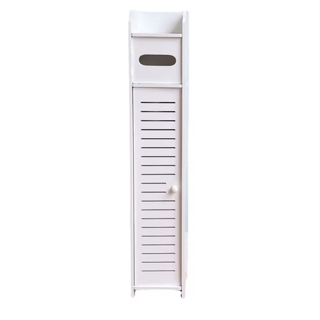 Slim White Toilet Paper Holder Cabinet - Multi-Layer Bathroom Storage Rack