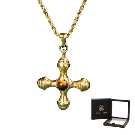 Stainless Steel Cross Pendant Necklace for Women-Retro Style with Tiger Eye