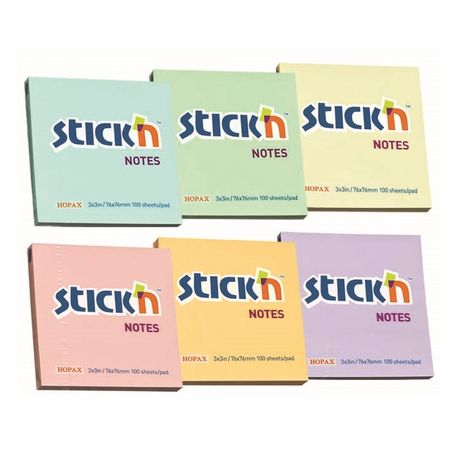 Stick'n Pastel Notes 76 x 76mm Pastel Note, 100 Sheets Per Pad - Pack of 6