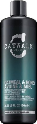 TIGI Catwalk Oatmeal & Honey Nourishing Conditioner 750ml is great for dry and damaged hair, as its nourishing composition deeply hydrates and moisturizes it. With a formula that includes Coconut Oil, Vitamin E, Rosemary Leaf Extract, and Oat Kernel Extract, this conditioner coats each hair strand in a rich and powerful blend. As a result, it not only replenishes the hair's natural moisture levels but also protects it against daily damage.