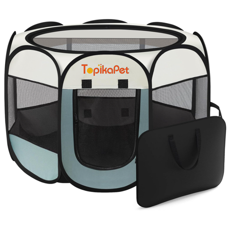 Topika Portable Pet Dog Playpen for Small Dogs & Cats with Bag, Grey