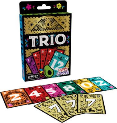 Trio is a card game in which players are looking for three of a kind. The deck consists of 36 cards, numbered 1-12 three times. Players receive some cards in hand, which they are required to sort from low to high, and the remaining cards are placed face down on the table.