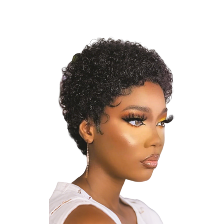 VSP 100% Brazilian Virgin Human Hair, Afro Kinky Curly Short Wig, Afro Curly Pixie Cut Wig, Non-Lace Wig